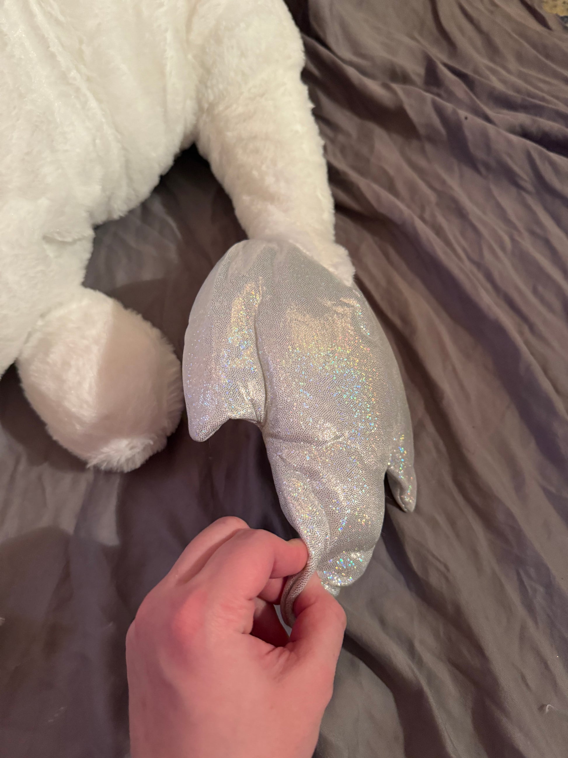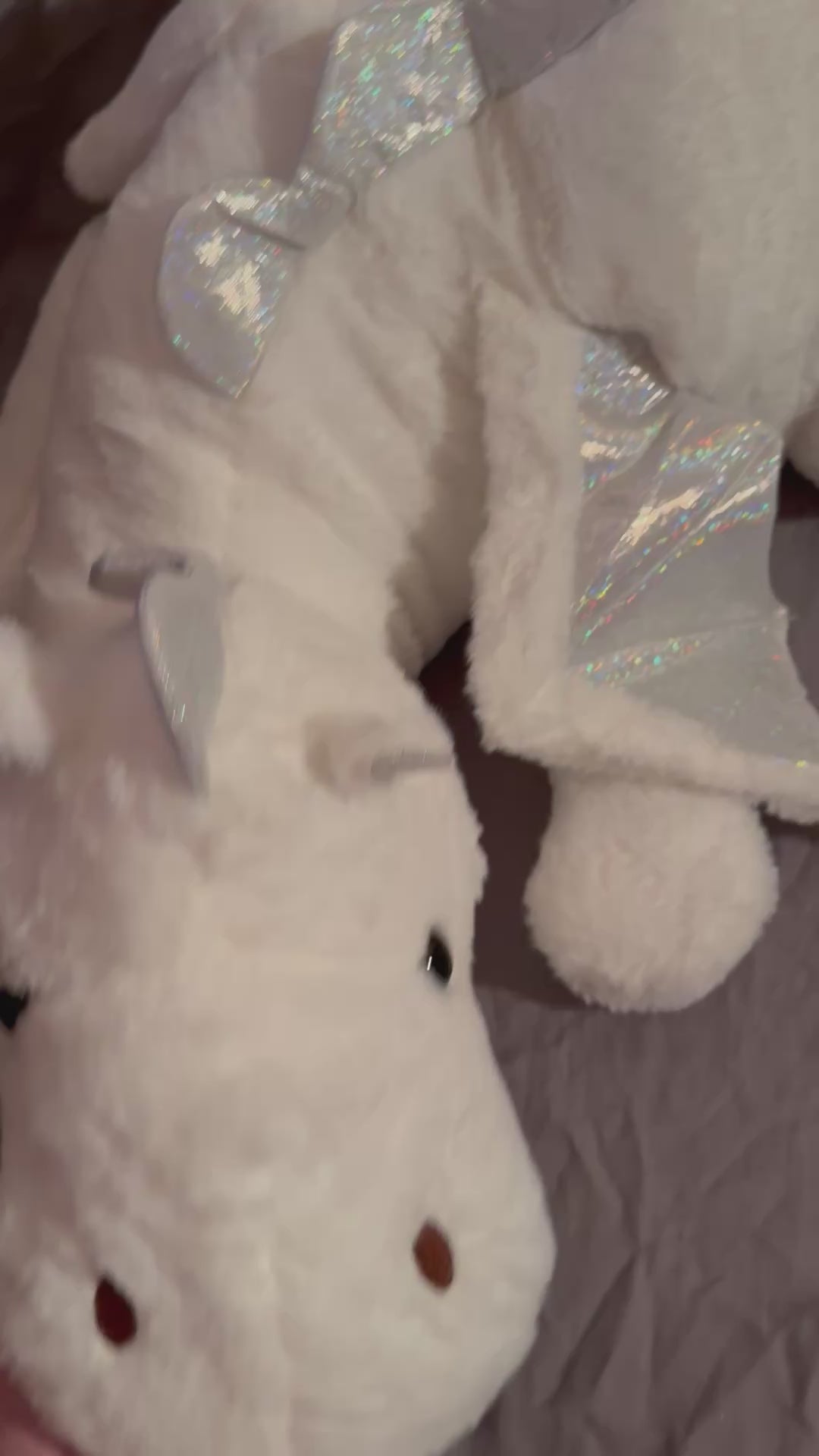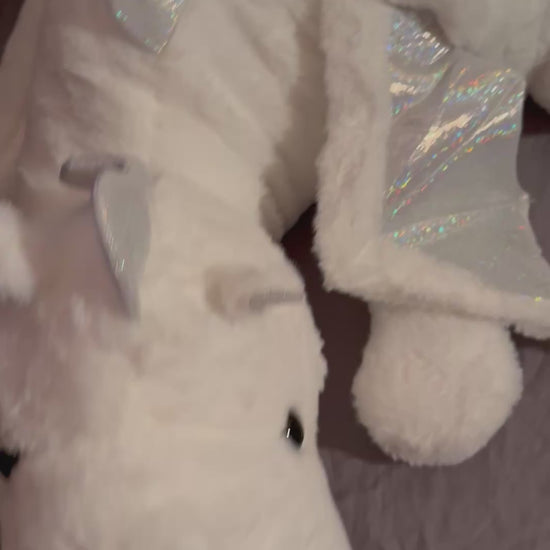 - Soft fabric with metallic fabric (not flaky, or scratchy). Made with black safety eyes.