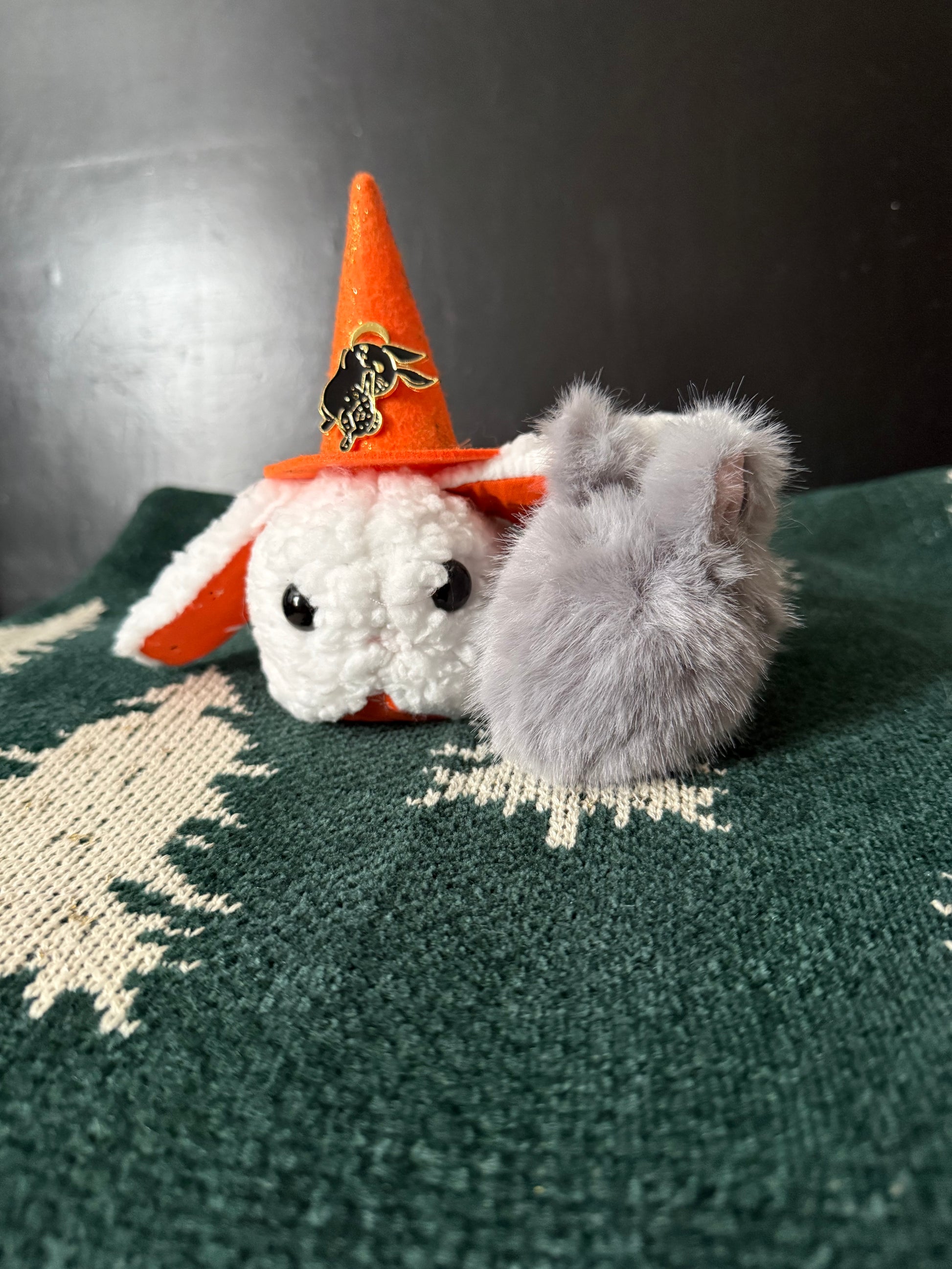 - Comes with a randomized glitter witches hat, matching pin, and emotional support bun sprite.