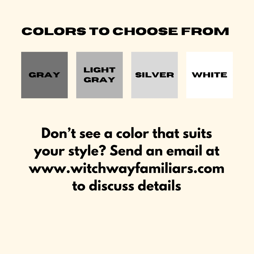 ⭐️ If you’d like a different color other than what is showcased in the photos, or have other inquiries, please email me at www.witchwayfamiliars@gmail.com